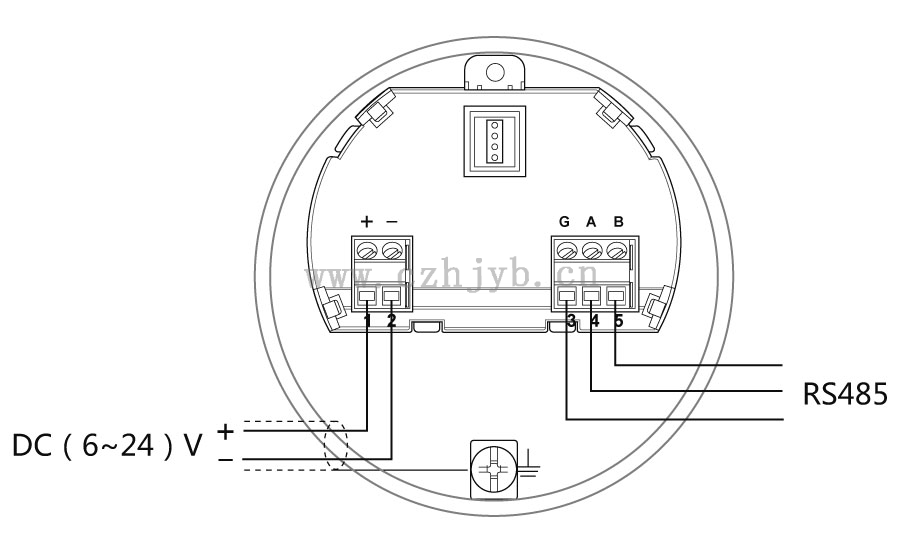 RS485/Modbus 供電電源和Modbus信號線分開各自分別使用一根兩芯屏蔽電纜線,具體供電電壓范圍參見技術數據。